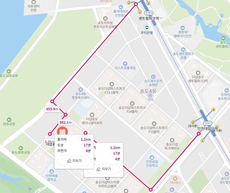 인천 1호선 센트럴파크역, 인천대입구역에서 도보 17분