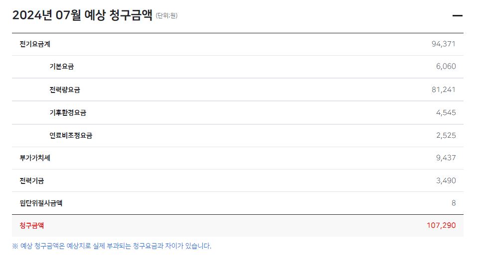 로그인 후 메인 화면에서 "요금조회" 메뉴를 선택하면 최근의 전기 사용량과 요금을 확인할 수 있습니다.